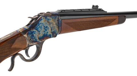 348752 | 1885 "Courteney" Stalking Rifle | $1,979 | .45/70 | 24" | Case-Hardened | A-Grade Satin Walnut | Blue Steel | Round | Rubber Buttpad | 6 | 1:20, RH | 37.5" | 7.1 lbs |