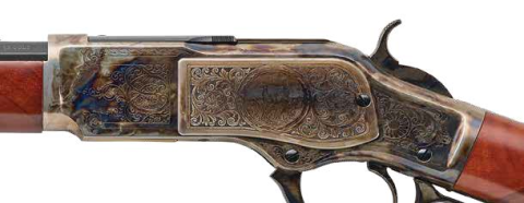 Just as importantly, it came in various configurations including a handy 20” barreled version that could be easily carried both on foot and in a horse-scabbard. Uberti wants to pay tribute to this iconic rifle’s 150th anniversary by offering the handy 20” version embellished with an original 19th-century engraving. Thanks to its sturdy all-steel frame, this engraved rifle comes in both the hard-hitting .45 LC and the versa-tile .357 Magnum / .38 Special chamberings.