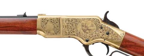 New! | 342341 | 1866 Yellowboy Deluxe | Engraved | $1,979 | .45 Colt | Lever | 20" | 10+1 | A-Grade Satin Walnut | Case-Hardened | Octagonal | Blue | Brass | Case-Hardened | 6 | 1:16, RH | 36" | 8.2 lbs |