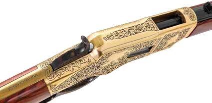 Because the receiver of the 1866 is a “closed top” design—save for the ejector port--our engravers were able to use that space to further embellish this model with a floral design.